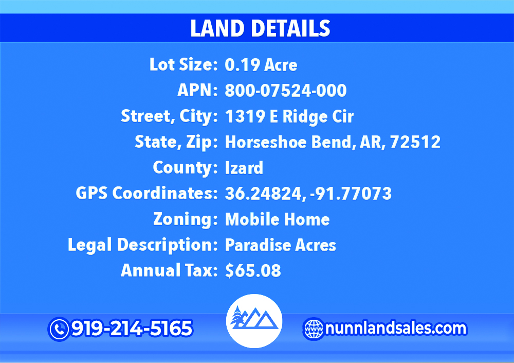 Take advantage of this amazing chance to own a beautiful 0.19-acre wooded retreat in Horseshoe Bend, Izard, AR, for just $39 a month! Whether you’re planning to build your dream home, place a mobile home, or create a cozy weekend getaway, this property offers endless possibilities.
