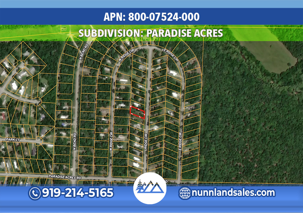 – The property at 1319 E Ridge Cir is located toward the end of the circle in the Paradise Acres subdivision.